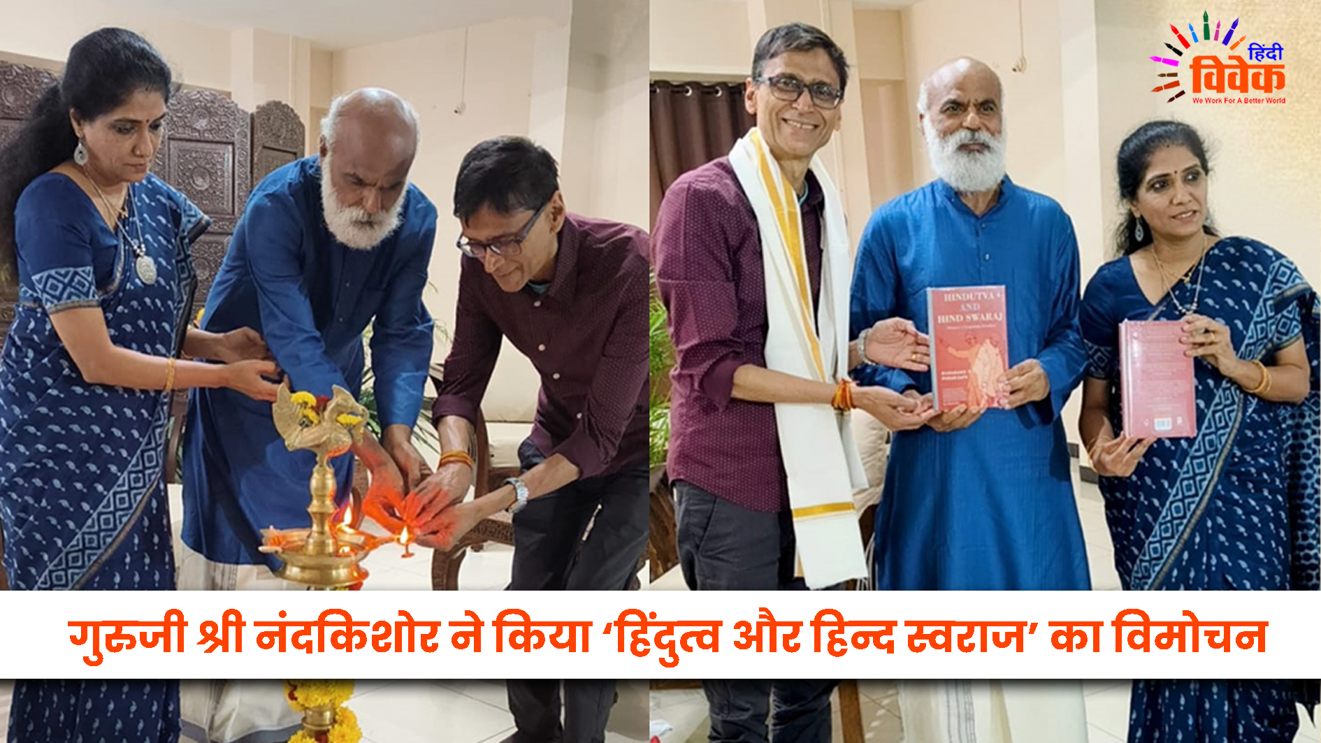 बेंगलोर। सहज स्मृति योग मार्ग के प्रणेता तथा उरिगम स्थित दर्पण आश्रम के संस्थापक गुरुजी श्री नंदकिशोर ने विश्वविख्यात चिंतक, टिप्पणीकार एवं पचास से अधिक पुस्तकों के लेखक मकरंद आर. परांजपे की सद्य प्रकाशित कृति ‘हिन्दुत्व तथा हिन्द स्वराज’ का विमोचन किया। यह समारोह दो चरणों में संपन्न हुआ। पहले चरण में मीनाक्षी रेजीडेंसी सभागार में गुरुजी के जन्म दिवस पर विशेष रूप से आयोजित कार्यक्रम में पुस्तक विमोचन के उपरांत अपने उद्गार व्यक्त करते हुए गुरुजी श्री नंदकिशोर ने कहा कि मकरंद परांजपे की अंग्रेजी भाषा में लिखी यह पुस्तक महात्मा गाँधी और वीर सावरकर के विचारों में एकत्व दर्शाने वाले तथा विरोधी दिखने वाले, दोनों ही बिंदुओं पर नवीन दृष्टि से प्रकाश डालती है।