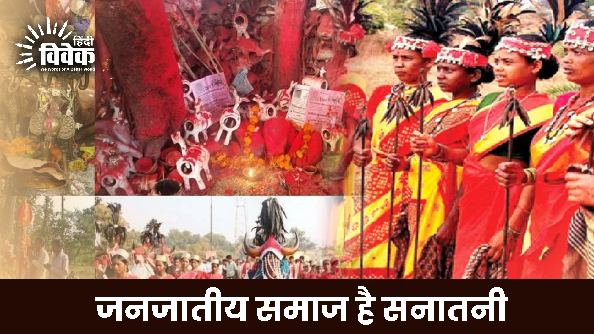 राष्ट्र के पूर्व से लेकर पश्चिम, उत्तर से लेकर दक्षिण चारों दिशाओं में निवास करने वाला जनजातीय समाज – सनातन हिन्दू धर्म की धर्मध्वजा का पालन करने वाला है। बल्कि यह कहना भी अतिशयोक्ति भी नहीं होगी कि – जिस कठोरता और नियमबद्धता के साथ जनजातीय समाज सनातन हिन्दू धर्म का पालन करता है। अपनी परंपराओं के के प्रति दृढ़ रहता है। उस अनुरूप शेष गैर जनजातीय हिन्दू समाज थोड़ा कमतर ही सिद्ध होता दिखता है। जनजातीय समाज विशुद्ध तौर पर सनातन हिन्दू समाज का अभिन्न अंग है। जो सनातनी मूल्यों एवं धर्मनिष्ठा के लिए जाने जाता है। जो अपनी परंपरागत विविधता के साथ उत्सवधर्मिता और लोक का मानक है।