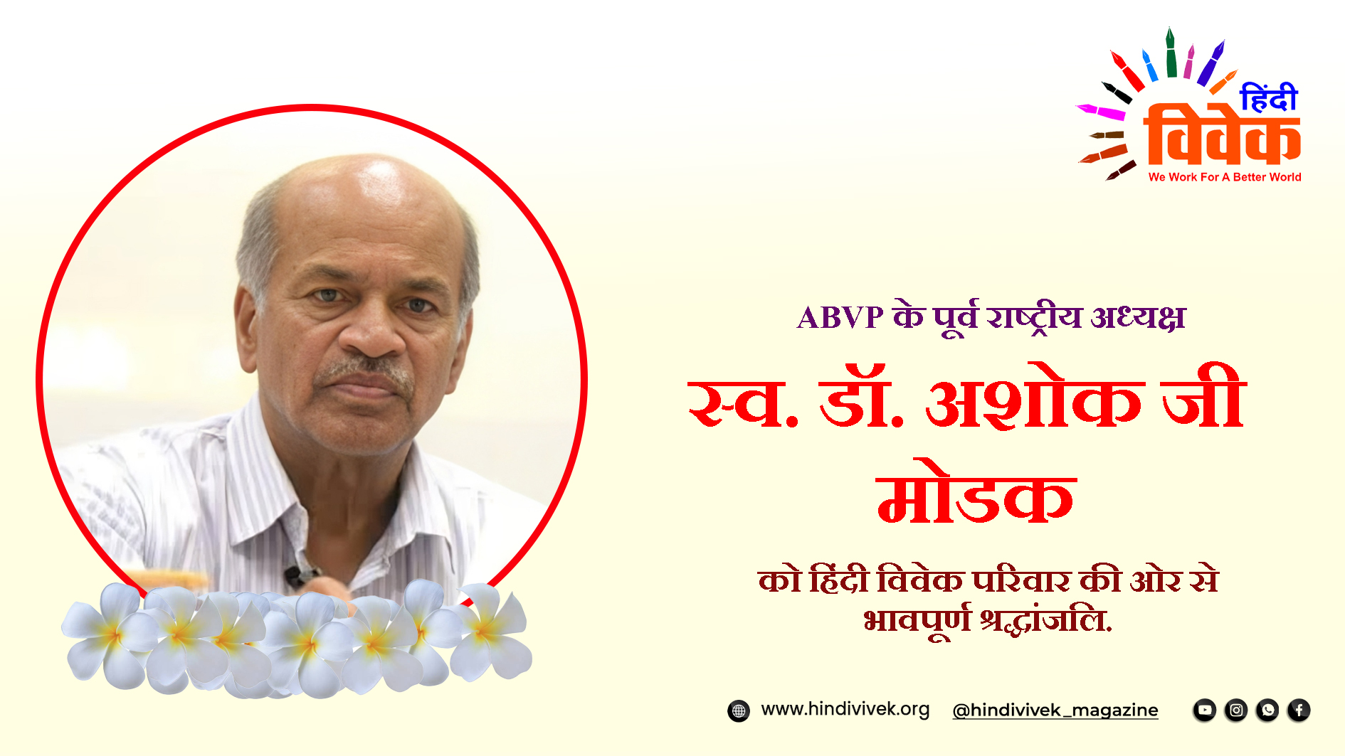 ईश्वर से प्रार्थना है कि उनकी आत्मा को शांति व सद्गति प्रदान करें। हिंदी विवेक परिवार की ओर से उन्हें भावपूर्ण श्रद्धांजलि।
