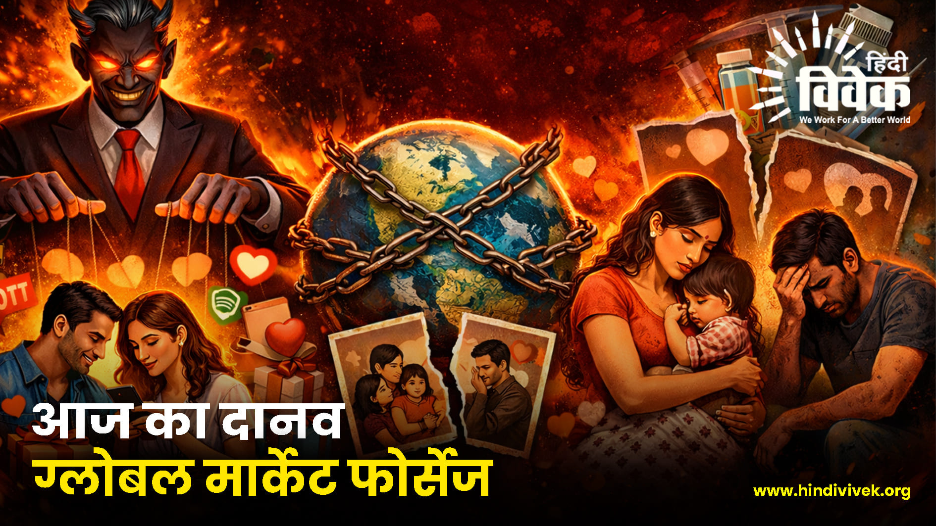 आज जब परिवार टूटने की चर्चा होती है, तो अक्सर इसे पीढ़ियों के अंतर, आधुनिक सोच या समय के बदलाव का परिणाम मान लिया जाता है। लेकिन वास्तविकता इससे अलग है। परिवार यूँ ही नहीं बिखरते। उन्हें धीरे-धीरे कमजोर किया जाता है, इतनी चुपचाप कि टूटन दिखाई भी नहीं देती। यह कोई एक दिन में होने वाली घटना नहीं है और न ही किसी एक फैसले का नतीजा। यह एक लंबी प्रक्रिया है, जिसे वर्षों तक धैर्य के साथ आगे बढ़ाया जाता है। इस पूरी प्रक्रिया के पीछे वही ताक़तें काम कर रही हैं, जिन्हें आज ग्लोबल मार्केट फोर्सेज कहा जाता है। यही हमारे समय के असली दानव हैं जो शोर मचाकर नहीं, बल्कि चुपचाप समाज की जड़ों को खोखला करते हैं।