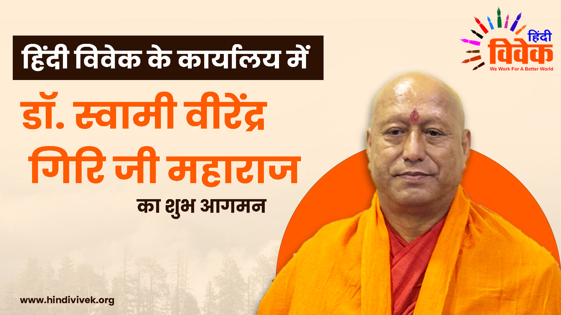 हिंदी विवेक के कार्यालय में आज दि. 12 फरवरी को शाम 4:30 बजे हरिद्वार के श्री पंचरक्षा नाम जूना आखाड़ा के महामंडलेश्वर डॉक्टर स्वामी वीरेंद्र गिरी जी महाराज का शुभ आगमन हुआ. आध्यात्मिक साधना, राष्ट्र एवं समाज हित की सेवा तथा सनातन धर्म के प्रति अखंड समर्पण के लिए विख्यात स्वामी जी युवा संतों में एक विलक्षण नेतृत्वकर्ता, विद्वान एवं तपस्वी साधक के रूप में प्रतिष्ठित हैं. उनके साथ दिल्ली निवासी दिलीप जैन और परेश शाह भी उपस्थित थे.