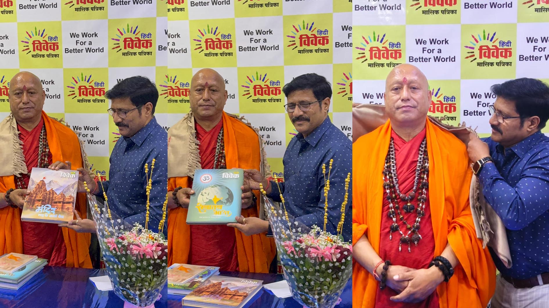 अपने आशीर्वचन में महाराज जी ने कहा कि आज की युवा पीढ़ी अर्थात जेन जी को चिंता नहीं, चिंतन करने की आवश्यकता है. सोशल मीडिया पर स्क्रोल करने से अच्छा है कि हम अपने समय का सदुपयोग करते हुए पुस्तक रूपी ज्ञान से अपनी चेतना को जगाए और विवेकवान बने. हिंदी विवेक के अंक, विशेषांक, ग्रंथ, पुस्तक के कंटेंट पाठकों को जागरूक बनाते हैं. इसके अलावा उन्होंने संघ की ऐतिहासिक शताब्दी यात्रा, वंदेमातरम् राष्ट्रगीत, राष्ट्रभक्ति से जुड़े विषयों पर प्रकाश डालते हुए राष्ट्र धर्म का बोध कराया. अंत में उन्होंने हिंदी विवेक के सभी कर्मचारियों को अपना आशीर्वाद प्रदान कर कृतार्थ किया.