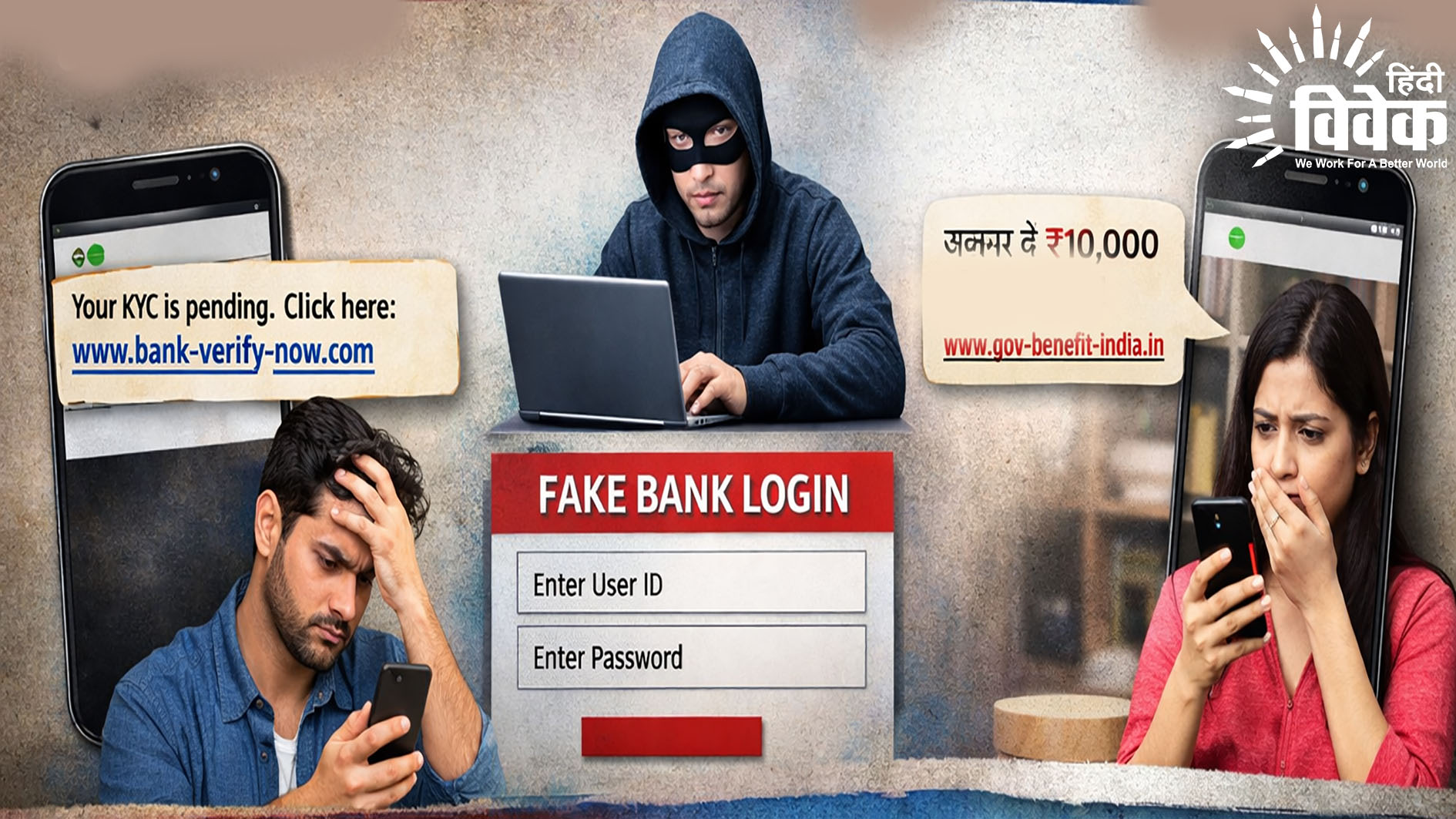 “Dear Customer, your bank KYC is pending. Update immediately to avoid account block. Click here: www.bank-verify-now.com”राहुल ने लिंक पर क्लिक किया, अपनी डिटेल और OTP डाला।