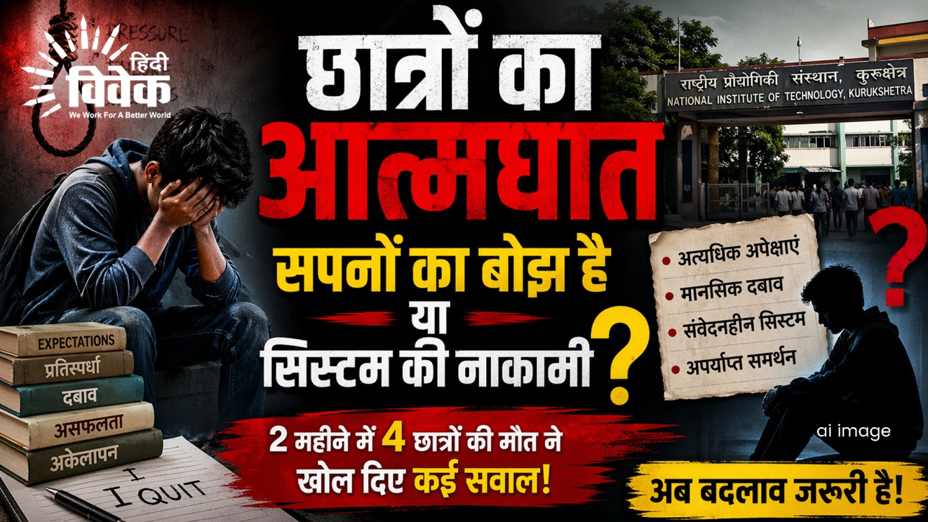 कुरुक्षेत्र स्थित राष्ट्रीय प्रौद्योगिकी संस्थान में 2 महीनों के भीतर 4 छात्रों द्वारा आत्महत्या की घटनाएं केवल एक संस्थान की त्रासदी एवं नाकामी नहीं हैं, बल्कि पूरे भारतीय समाज, शिक्षा व्यवस्था और हमारी सामूहिक संवेदनहीनता पर लगा गहरा प्रश्नचिह्न हैं। ये घटनाएं हमें झकझोरती हैं कि आखिर वह कौन-सी परिस्थितियां हैं, जिनमें देश की सर्वश्रेष्ठ प्रतिभाएं जीवन से हार मानने को विवश हो जाती हैं।